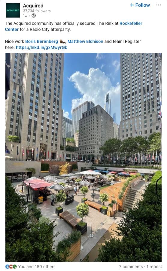 Pulling off three fan organized events alongside the Acquired live show in New York City was a massive undertaking. We did a community run, a pre-show meetup at a local bar, and then a takeover of the Rockefeller Center Rink for the afterparty. Here’s a breakdown of what worked, what didn’t, and what we’ll do differently next time.